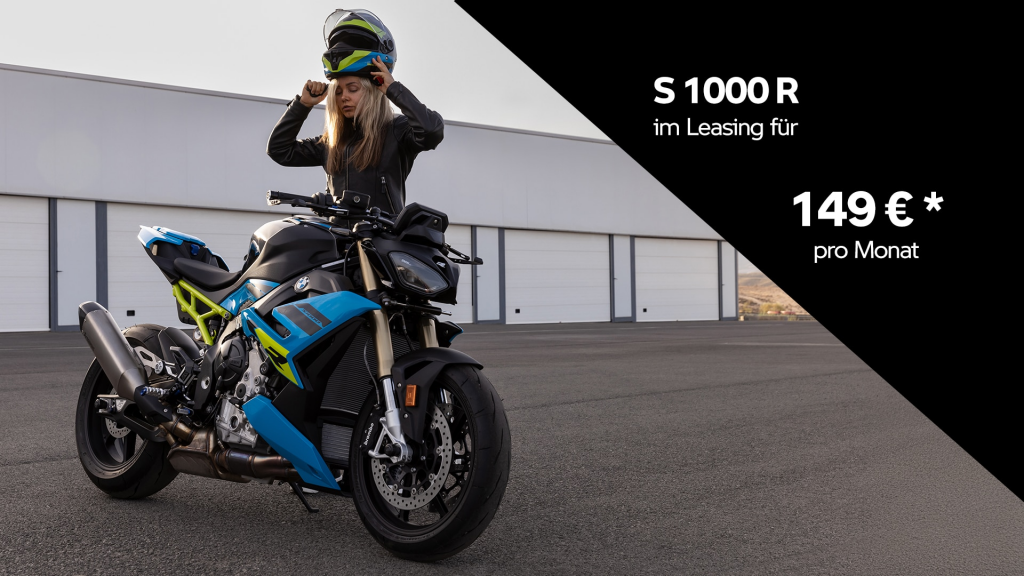 ² Angebot der BMW Austria Leasing GmbH, BMW Restwertleasing für das Fahrzeug BMW S 1000 R, beinhaltet einen garantierten Restwert am Vertragsende bei vertragskonformer Nutzung. Gültig bei Kauf- und Vertragsabschluss von 01.10.2025 bis 31.12.2025, Auslieferung bis 30.04.2026. Anschaffungswert höchstens € 19.900,-, Anzahlung € 4.407,-, Laufzeit 36 Monate, monatliche Leasingrate € 159,-, genaue Höhe abhängig von Sonderausstattung und Zubehör gem. individueller Konfiguration, 5.000 km p.a., Restwert € 10.948,98, Bearbeitungsgebühr € 260,-, Rechtsgeschäftsgebühr € 117,52, eff. Jahreszins 4,08%, Sollzins fix 2,99%, Gesamtbelastung € 21.457,50. Beträge inkl. NoVA und MwSt. Angebot freibleibend. Änderungen und Irrtümer vorbehalten. Angebot erhältlich bei allen teilnehmenden Händlern. Nicht kombinierbar mit anderen Leasing-Angeboten und Aktionen der BMW Austria Leasing GmbH. Für Konditionen für Gewerbetreibende stehen Ihnen die teilnehmenden BMW Partner zur Verfügung.